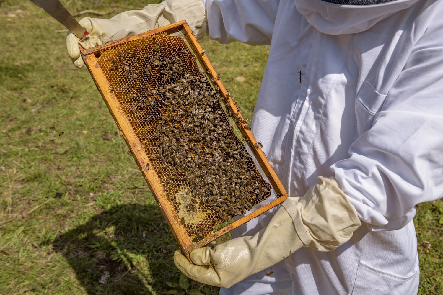 - Then you'll put on your suit, hat, and gloves and surround yourself with thousands of bees! We'll open the boxes and you'll discover life inside a colony firsthand.