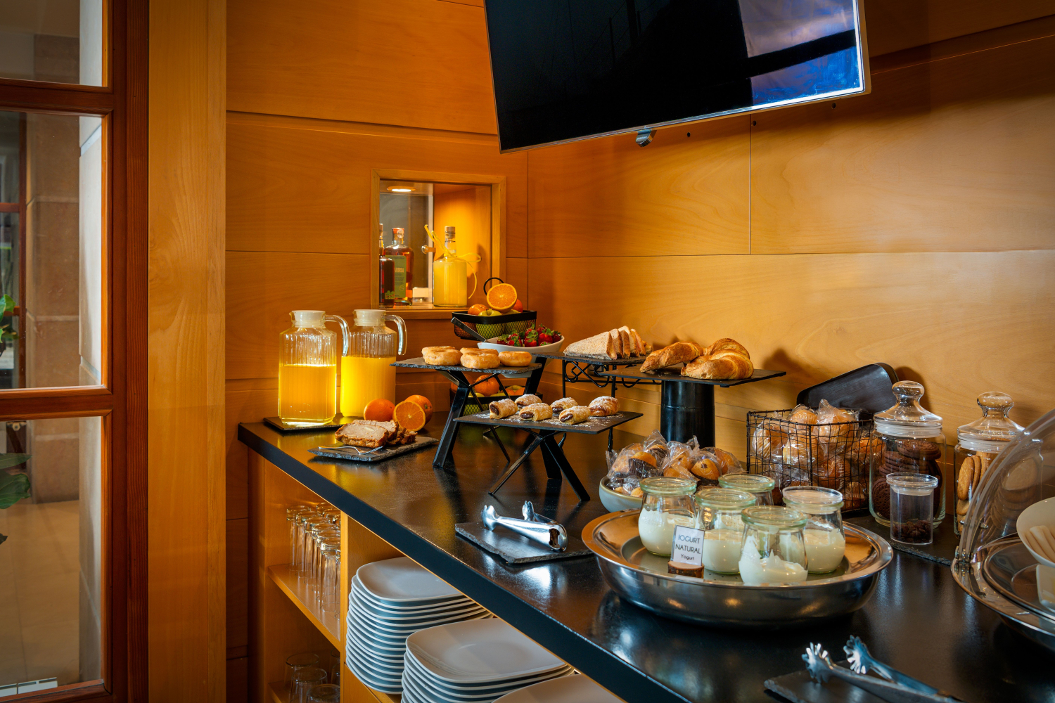 Comença el dia amb energia. El nostre bufet inclou fruita, sucs, cereals, embotits, torrades, pastissos casolans, cafès i molt més! També oferim esmorzar per emportar, amb reserva prèvia.