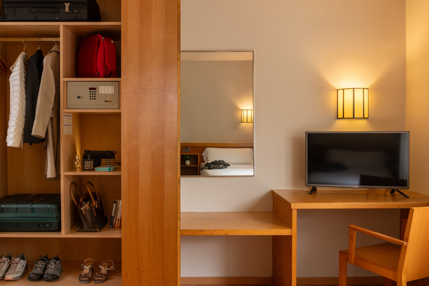 Amb la mateixa calidesa de l'estàndard, però amb aire condicionat per a més confort. Pensada per a qui no vol renunciar a la comoditat, tant si és per feina com per desconnexió. Inclou bany privat, escriptori, TV, Wi-Fi i vistes tranquil·les. Ideal per compartir sense perdre espai ni benestar.